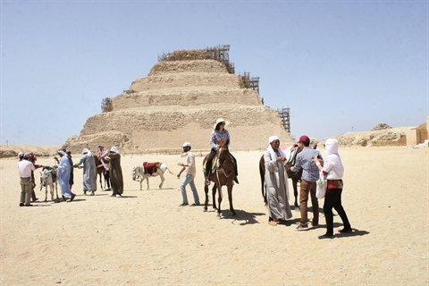 Ce complexe funéraire est le plus vieil édifice jamais construit dans ce pays d’Afrique du Nord. Il est l’œuvre de l’architecte Imhotep. La pyramide de 62 mètres de hauteur a été érigée pour le pharaon Djéser vers 2650 avant J.-C. L’édifice, de six étages, était entouré par des murs comportant 14 portes. La pyramide à degrés de Djéser est une des pyramides en pierres de taille les plus anciennes. Elle fait partie de tout un complexe funéraire pour le roi Djéser. Son style se démarque des autres pyramides et c’est en cela qu’elle est célèbre. À noter que le président Hô Chi Minh a visité le site de Saqqarah lors de son séjour en Égypte en juin 1946. Saqqarah possède d’autres temples et d’autres pyramides dont le Sérapéum, les complexes funéraires de Sekhemkhet, d’Ouserkaf, de Chepsekaf, de Téti ou encore celui de Pépi.