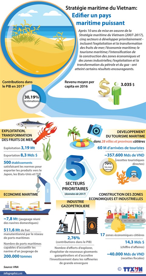 Après 10 ans de mise en oeuvre de la Stratégie maritime du Vietnam (2007-2017), cinq secteurs à développer prioritairement ont atteint certains résultats encourageants.