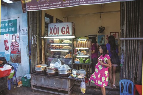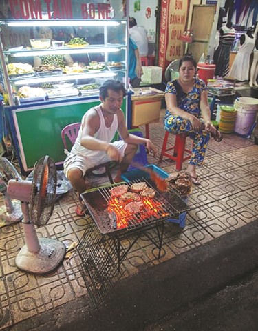 | Le com tâm, préparé à partir de grains de riz brisés et de porc grillé. |