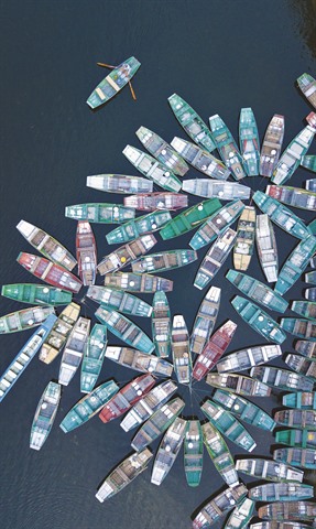 | Vue aérienne des barques colorées. |