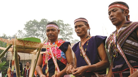 | Les villageois dansent ensemble et jouent du gong pour souhaiter une bonne santé au bébé. |