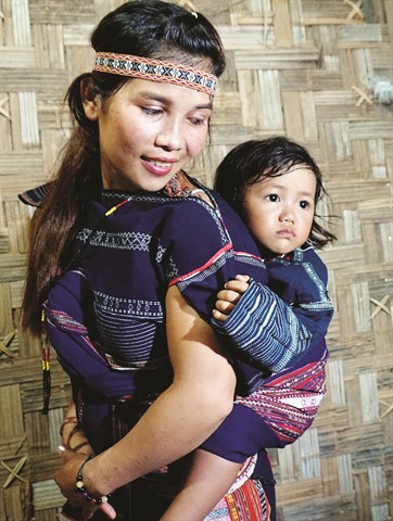 | La mère et le bébé après la fête du "soufflage d’oreille". |