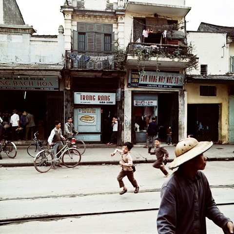 | Dans une rue hanoïenne, en 1975. |