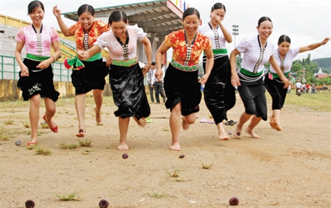 | Le +To ma he+ est un jeu traditionnel pratiqué par la gent féminine à l’occasion du Têt. |