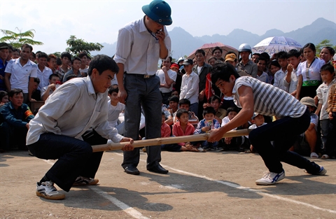 | Le jeu du bâton consiste à pousser l’adversaire hors de la zone délimitée. Photo : Minh Tri/VNA/CVN |