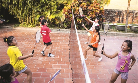 | Chaque jour, de 17h00 à 19h00, des dizaines d’enfants se réunissent chez M. Vu pour apprendre le badminton. |