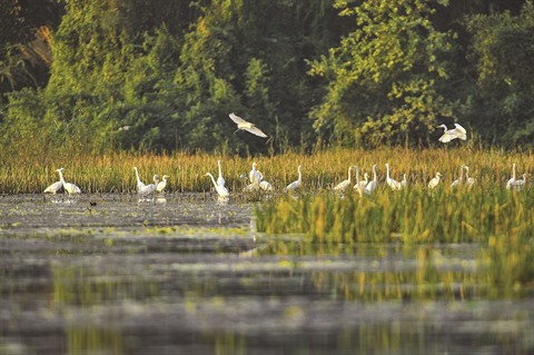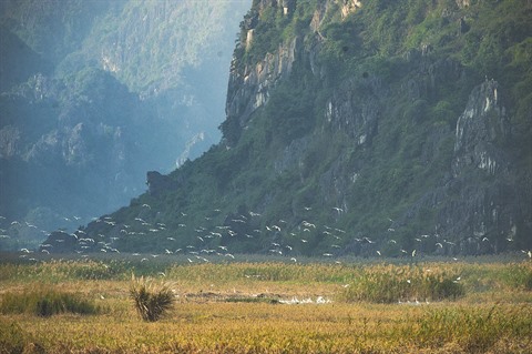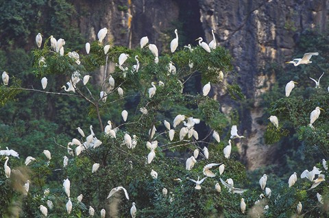 | Vân Long photographiée dans l’après-midi avec des bandes de hérons. |