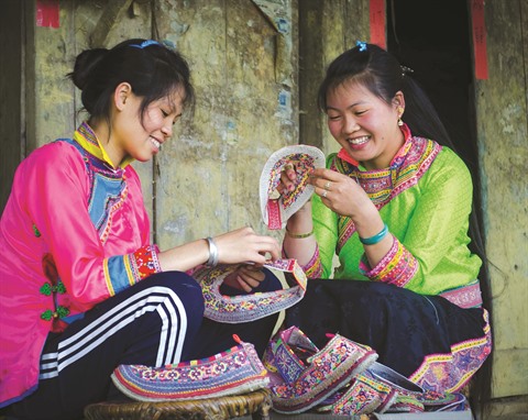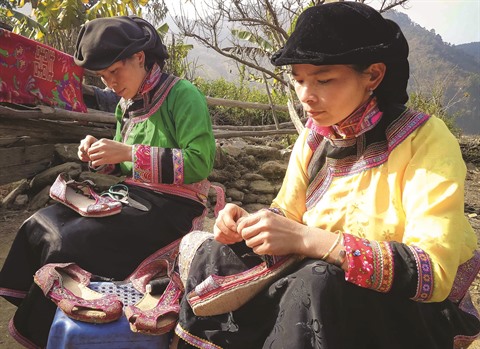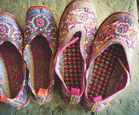 | Chaussures brodées et colorées des femmes Xa Phang. |