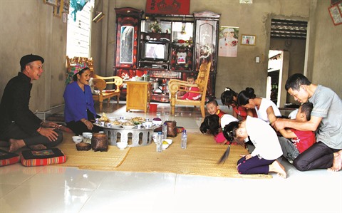 | Les membres de la famille rendent hommage aux anciens et leur souhaitent bonne santé. |
