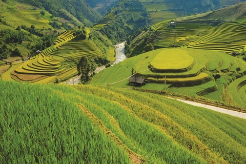 | «Un escalier de rizières» sculpte ce flanc de montagne. |