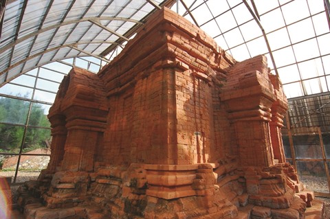 Ce bâtiment de plus de 1.000 ans était enfoui à une profondeur de 5 à 7 m dans le sable et à seulement 120 m du bord de mer. La fouille archéologique a permis de trouver de nombreux artefacts tels qu’un Yoni (le Yoni, dans l’hindouisme, désigne l’organe génital féminin. Il est le symbole de l’énergie féminine) en grès, des vases en céramique, etc. Ce sont des artefacts typiques du culte de l’ethnie Cham.