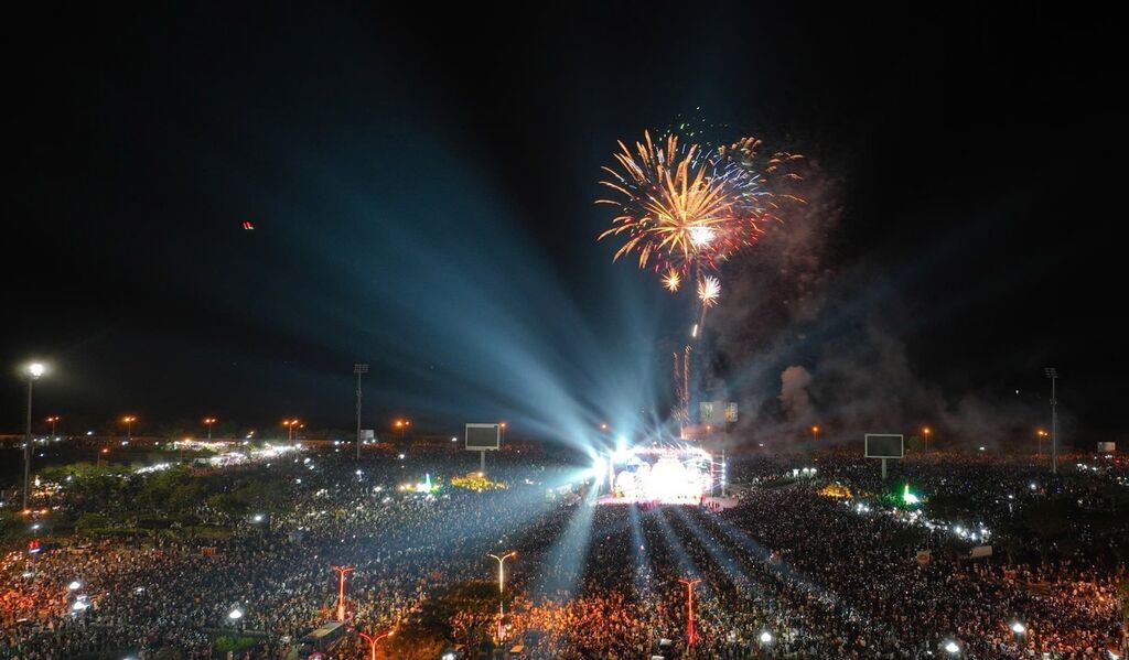 | De brillants feux d'artifice célèbrent le réveillon du Nouvel An lunaire 2025 dans la ville de Rach Giá, province de Kiên Giang (Sud). |