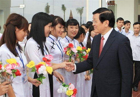 À cette occasion, le président Truong Tân Sang s'est également rendu à l'Université Hùng Vuong.