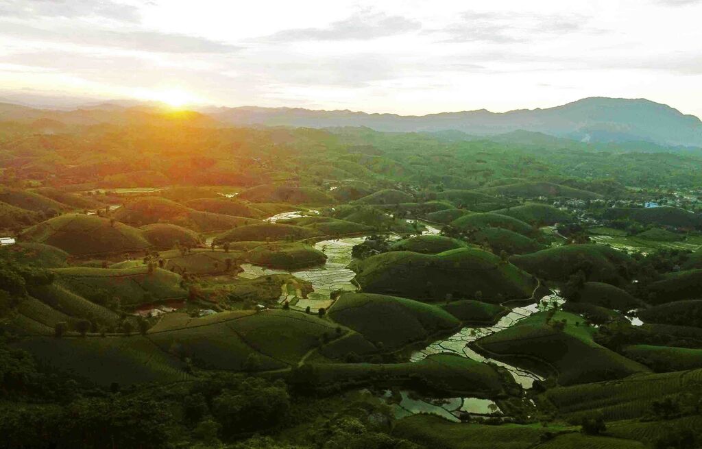 | Une vue de la colline des théiers Long Côc, une destination prisée à Phu Tho. |