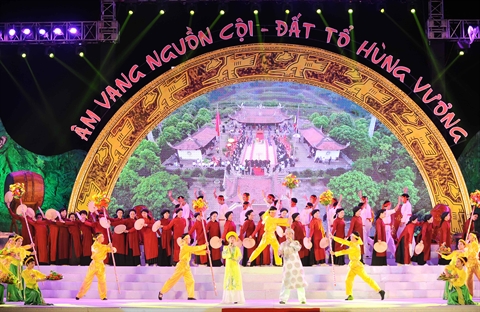 | Programme artistique en l'honneur de la fête du Temple des rois Hùng 2015, le 25 avril sur la place Hùng Vuong dans la ville de Viêt Tri, province de Phu Tho (Nord). |