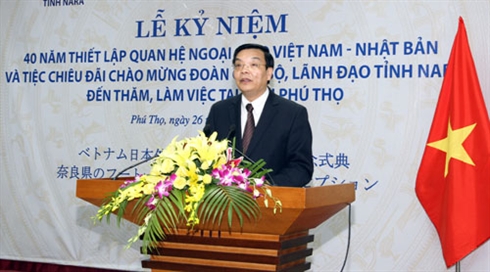 | Le président du Comité populaire de Phu Tho, Chu Ngoc Anh, prend la parole lors de la cérémonie de célébration du 40e anniversaire de l'établissement des relations diplomatiques Vietnam-Japon, le 26 août à Phu Tho. |