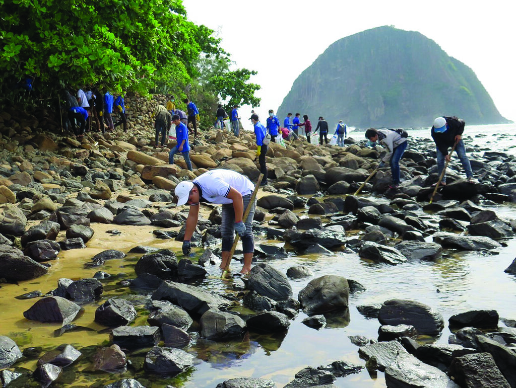 | Jeunes collectant des déchets à Hòn Yên, province de Phu Yên (Centre). |