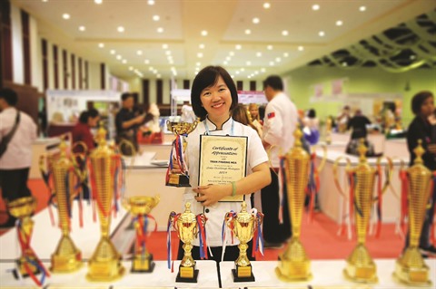 Actuellement, elle forme des étudiants à participer à des compétitions internationales pour affirmer la position des gâteaux en gelée 3D vietnamiens sur la scène internationale.
