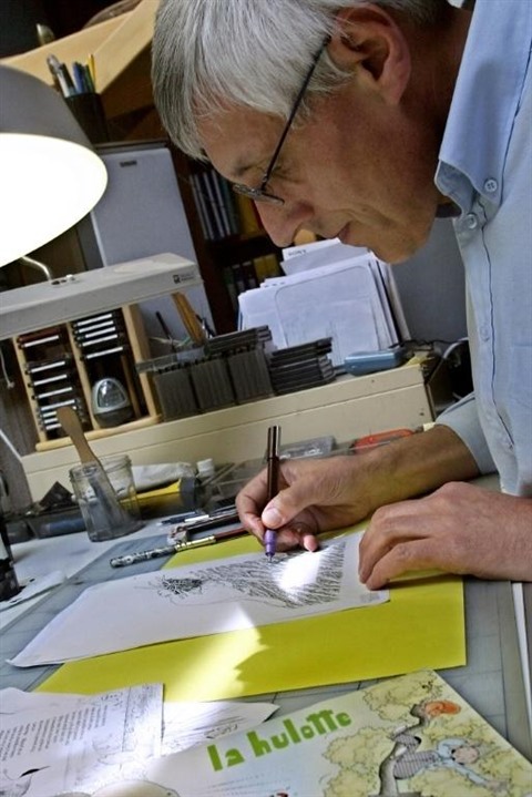 C'est là, au premier étage de sa maison de Boult-aux-Bois, au cœur des Ardennes, que l'ancien instituteur de 73 ans trouve l'inspiration, devant son imposante table à dessin.