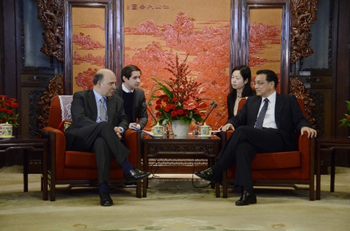 | Le ministre français de l'Économie et des Finances, Pierre Moscovici (gauche) et le vice-Premier ministre Li Keqiang le 8 janvier à Pékin. Photo : AFP/VNA/CVN |