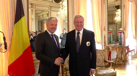 | Le vice-Premier ministre et ministre des Affaires étrangères de la Belgique, Didier Reynders (gauche), remet le 5 mars à Bruxelles la décoration de Grand Officier de l'Ordre de Léopold à Pierre Vimont, secrétaire général exécutif du Service européen pour l'action extérieure |
