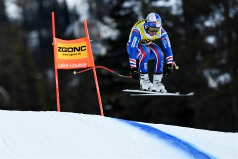 | Alexis Pinturault sur la piste de la descente de Lake Louise, dans la province canadienne d'Alberta, le 24 novembre |
