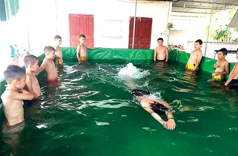 Ngô Minh Thanh ne savait pas nager. Pour contrôler la qualité de son travail, le professeur a appris à nager lui-même dans sa piscine, avant de l’expérimenter dans une école de la ville de Vinh (capitale provinciale de Nghê An), début septembre, puis de l’offrir à l’école primaire de Anh Son. Et, Ngô Minh Thanh a perfectionné ce travail pour faciliter davantage l’apprentissage des élèves.