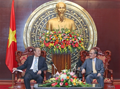 | Le président de l'Assemblée nationale du Vietnam, Nguyên Sinh Hùng (droite), a reçu le 18 avril à Hanoi, Li Wu Wei, vice-président de l'Association du peuple chinois pour la paix et le désarmement. |