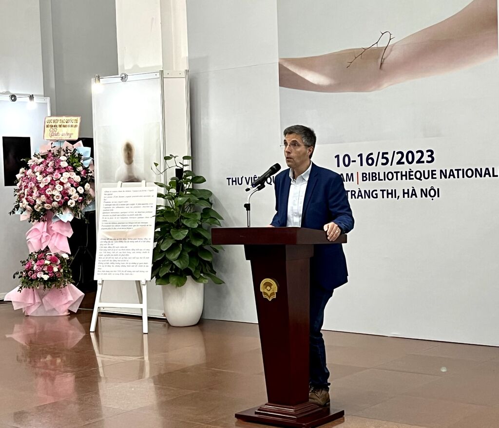 | Nicolas Dervaux, représentant des gouvernements de la Fédération Wallonie-Bruxelles et de la Wallonie au Vietnam, prend la parole lors de l'événement. |