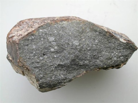 | Un morceau d'environ 10cm de la météorite Sahara 97096, l'une des chondrites à enstatite étudiées ( Muséum national d'Histoire naturelle). |