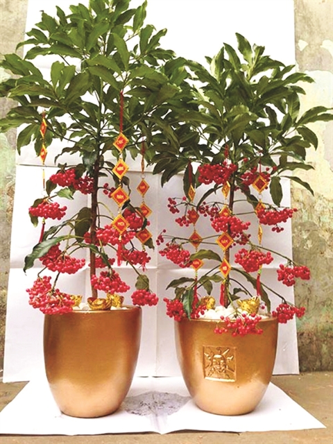 Après la floraison, les baies de Noël (Kim ngân luong) produisent de petites baies rouges en grappes. Symbolisant la prospérité et la fortune, cette plante est particulièrement appréciée par ceux qui font des affaires. Chaque plante coûte entre 200.000 et 500.000 dôngs.
