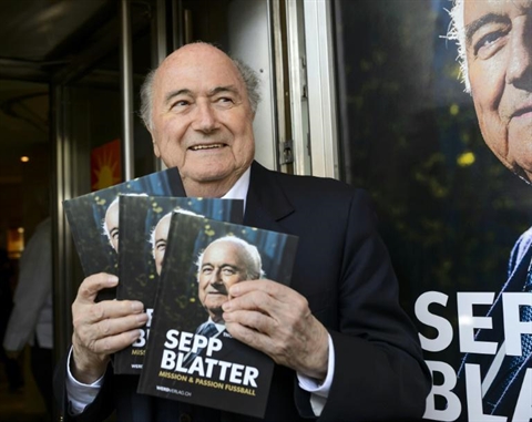 | Sepp Blatter, lors de la sortie de sa biographie à Zurich, le 21 avril. |