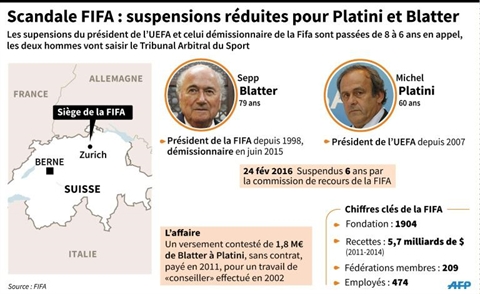| Scandale FIFA : suspensions réduites pour Platini et Blatter. |