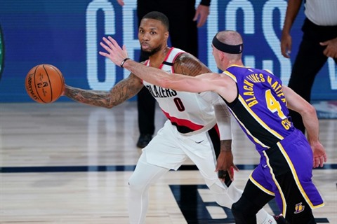 | Les 34 points de Damian Lillard n'auront pas suffi à Portland pour battre les Lakers de Los Angeles lors du match N.3 du 1er tour des play-offs NBA, le 22 août à Orlando. |