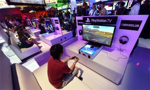 | Des Américains testent la nouvelle console PlayStation à Los Angeles le 10 juin 2014. |