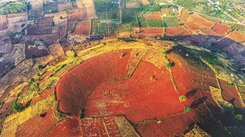 | Vue aérienne du volcan Chu Dang Ya. |