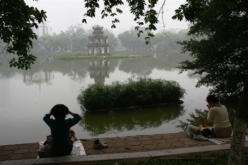 Pour l’heure, Ba Đình m’offre un répit, car l’esplanade est provisoirement interdite d’accès pour cause de visite officielle au palais présidentiel. La visite guidée se fait en voiture, et du coup je gagne un peu de temps pour aller flâner du côté du grand Lac de l'Ouest. Tandis que mes amis s'extasient de la majesté du plan d'eau, et du plaisir de baguenauder sur ses rives, je pense déjà aux embouteillages qu'il faudra franchir avant de pouvoir atteindre le petit lac Hoàn Kiêm, en faire le tour, passer par l'Opéra, la place Lý Thái Tô, aller manger un "bún chả" (vermicelle au porc grillé)…