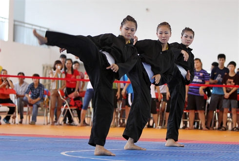 | Séance d’entraînement de la sélection de pencak silat au Centre d’entraînement sportif N°1, à Hanoi. |