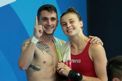 | Matthieu Rosset et Laura Marino, sacrés champions du monde de l'épreuve de plongeon par équipes (3 m/10 m), le 18 juillet |