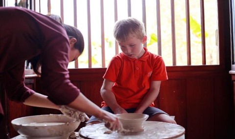 | Un petit garçon se passionne pour les métiers d'artisanat des villages vietnamiens traditionnels tels que la poterie, le tissage de tissus ou encore le tricotage de bambou et de rotin. |