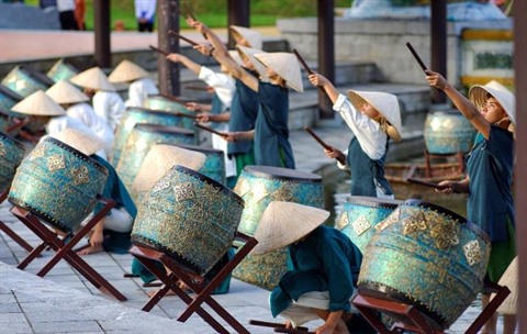 | Un numéro de tambours lors du spectacle artistique de Nam An. |