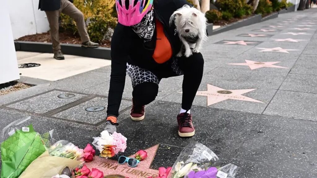 | Un passant dépose des fleurs près de l'étoile de Tina Turner sur le "Walk of Fame" de Hollywood, le 24 mai. |