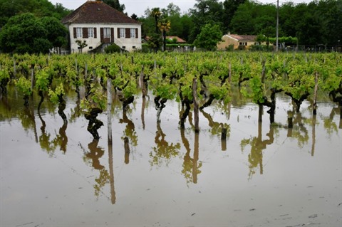 | Des vignobles inondés après de fortes pluies à Artigues-Près-Bordeaux le 11 mai. |