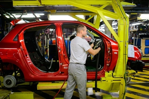 | Une chaîne de montage à l'usine Renault le 24 février à Novo Mesto en Slovénie. |