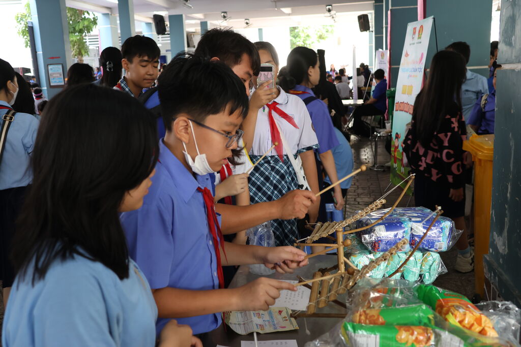 De plus, les élèves ont joué à des jeux folkloriques, ont essayé des instruments de musique traditionnelle et ont dégusté des spécialités culinaires. Ils ont aussi pu tester leurs connaissances sur la victoire historique de Diên Biên Phu avec "Sonner la cloche d'or", un programme de mini-jeux.