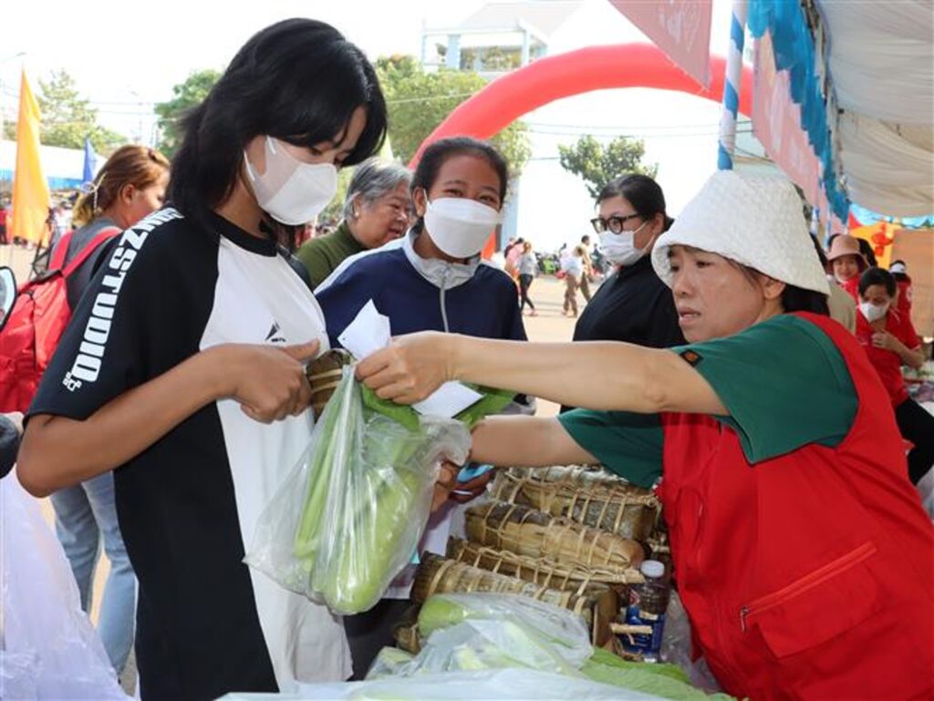 | Un stand de produits inscrit au programme "Têt humanitaire" dans la province de Vinh Long (Sud), le 4 février. |