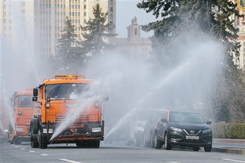 | Désinfection dans une route à Moscou, le 24 avril. |