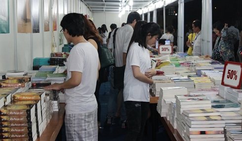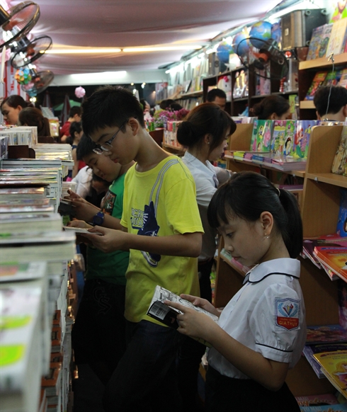 | Les stands de la compagnie Fahasa sont pris d’assaut par les jeunes. |