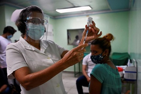 | Une infirmière se prépare à administrer à une seconde dose du candidat-vaccin Abdala au personnel soignant de Cienfuegos (Cuba) le 30 mai. |