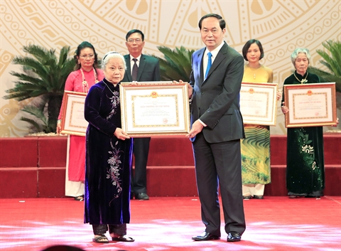 | Le président Trân Dai Quang remet le Prix Hô Chi Minh à la famille de Luong Nghia Dung, journaliste de l'Agence vietnamienne d'Information (VNA) tombée au champ d'honneur. |